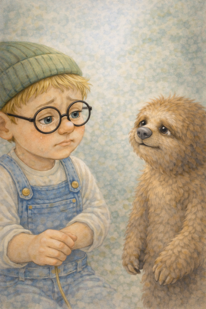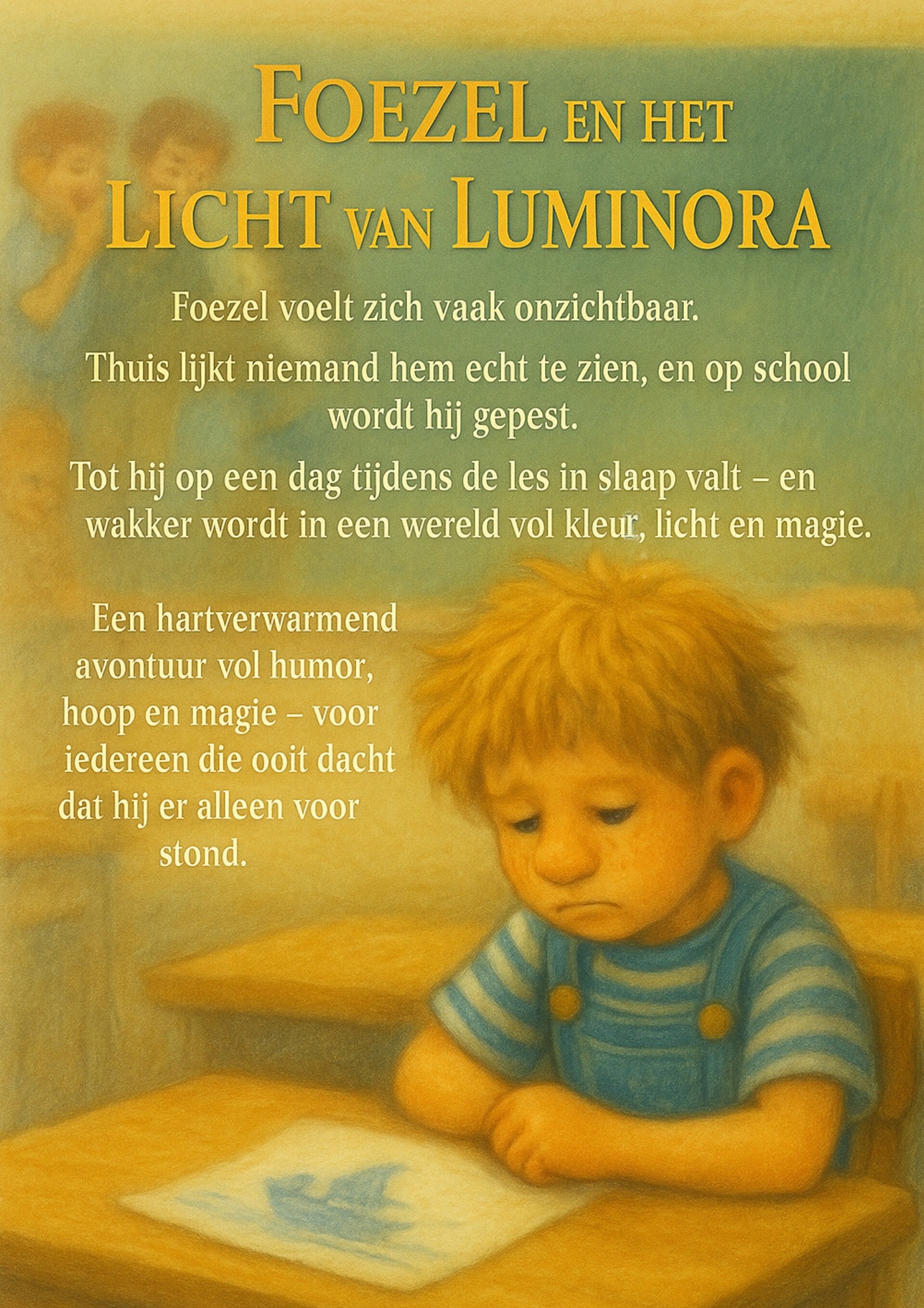 Foezel zat stil in de klas. Zijn handen lagen gevouwen op de tafel. Hij durfde nauwelijks op te kijken. Zijn blauwe ogen glinsterden zacht. Niemand leek het te zien. Hij voelde zich vaak of hij onzichtbaar was...behalve als de kinderen hem wilden plagen.