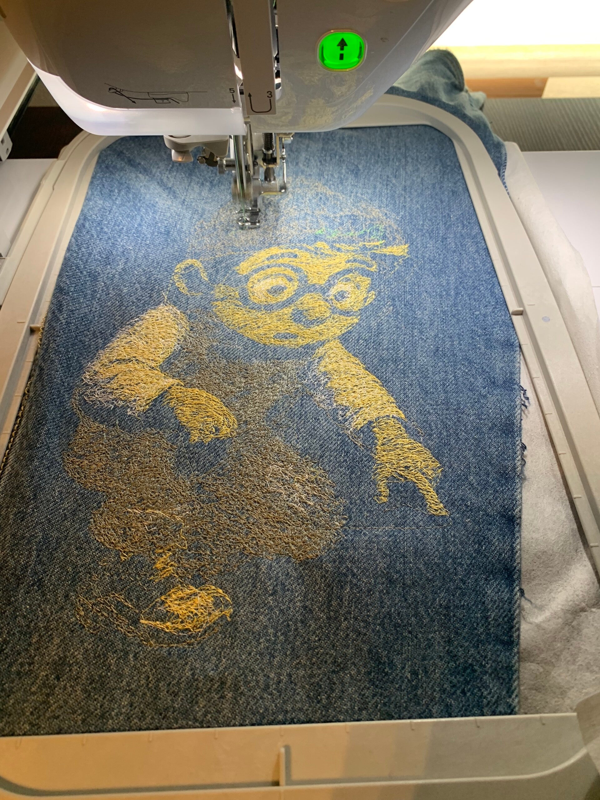 Wat mijn werk bijzonder maakt, is dat sommige personages verder groeien dan het papier. Ik vertaal ze naar embroidery {borduurwerk} zodat verhalen tastbaar worden. Een Woudvrienden kan zo ineens op stof verschijnen….op een tas, jas, kussen of knuffel.