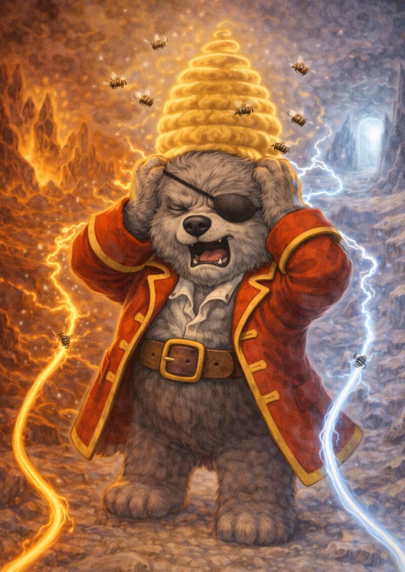De lucht in de keuken leek te veranderen. De lamp flikkerde, de gordijnen wapperden alsof er wind opstak. Bear zette zijn poot stevig op de grond van de WASMAND EXPRESS en bulderde….