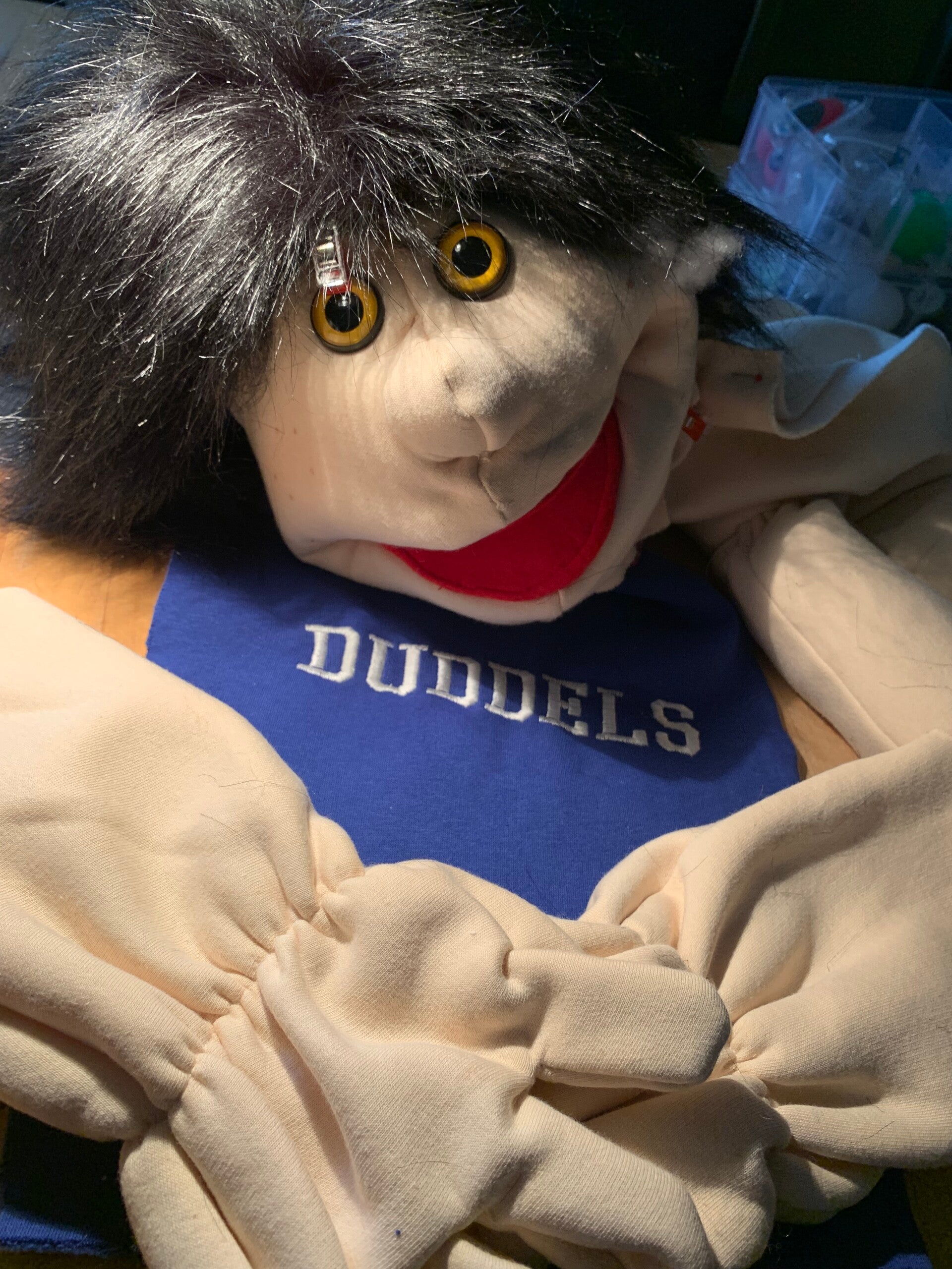 In mijn atelier Duddels komt fantasie tot leven! Hier maak ik mijn buikspreekpoppen, die later als échte personages schitteren in mijn kinderboeken. Elke pop heeft zijn eigen stem,zijn eigen streken en natuurlijk zijn eigen verhaal.