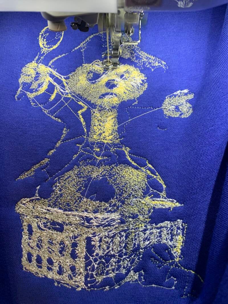 Naast het maken van poppen laat ik ook mijn borduur machine meedoen in het avontuur. Ik maak en druk truien met teksten en quotes uit mijn boeken, vrolijk, eigenwijs en vol karakter.