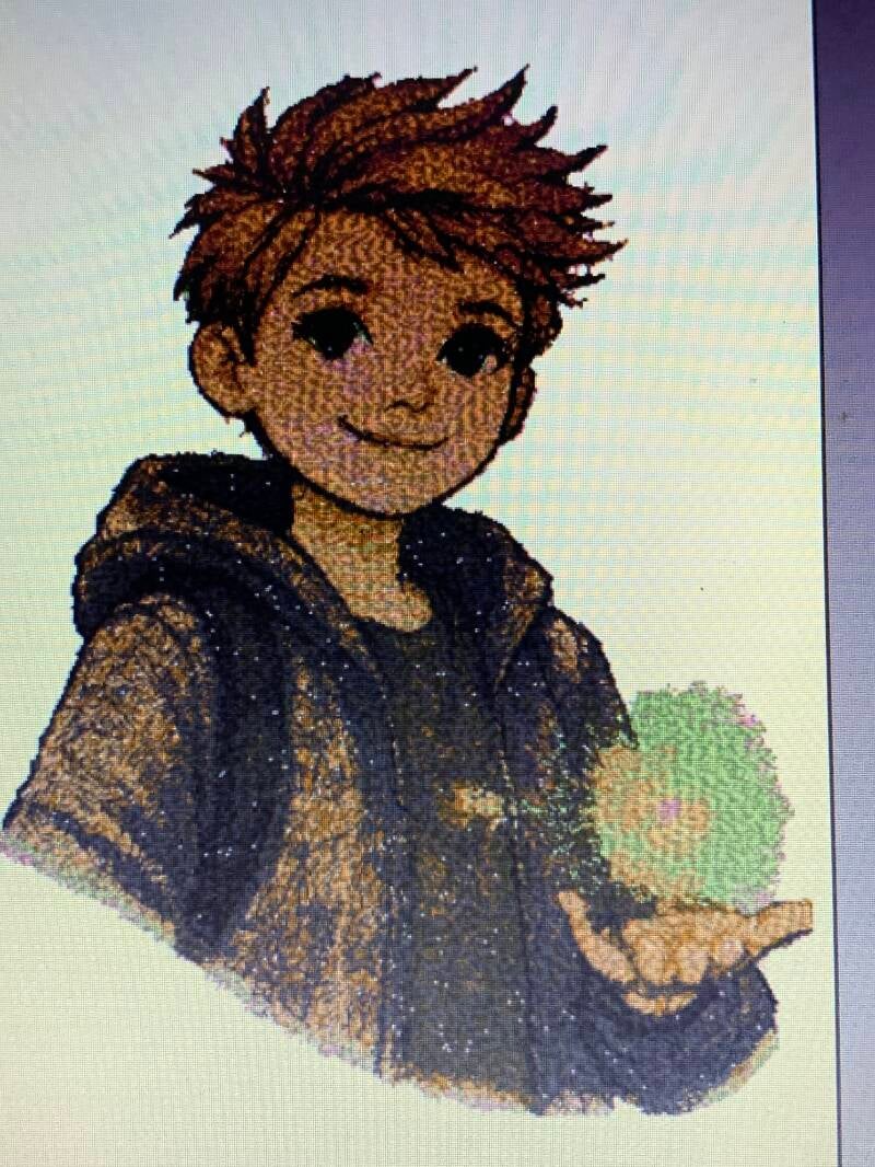 Met behulp van de innovis worden de figuren die meedoen in de boeken van de Magische Woudvrienden geborduurd op een trui
